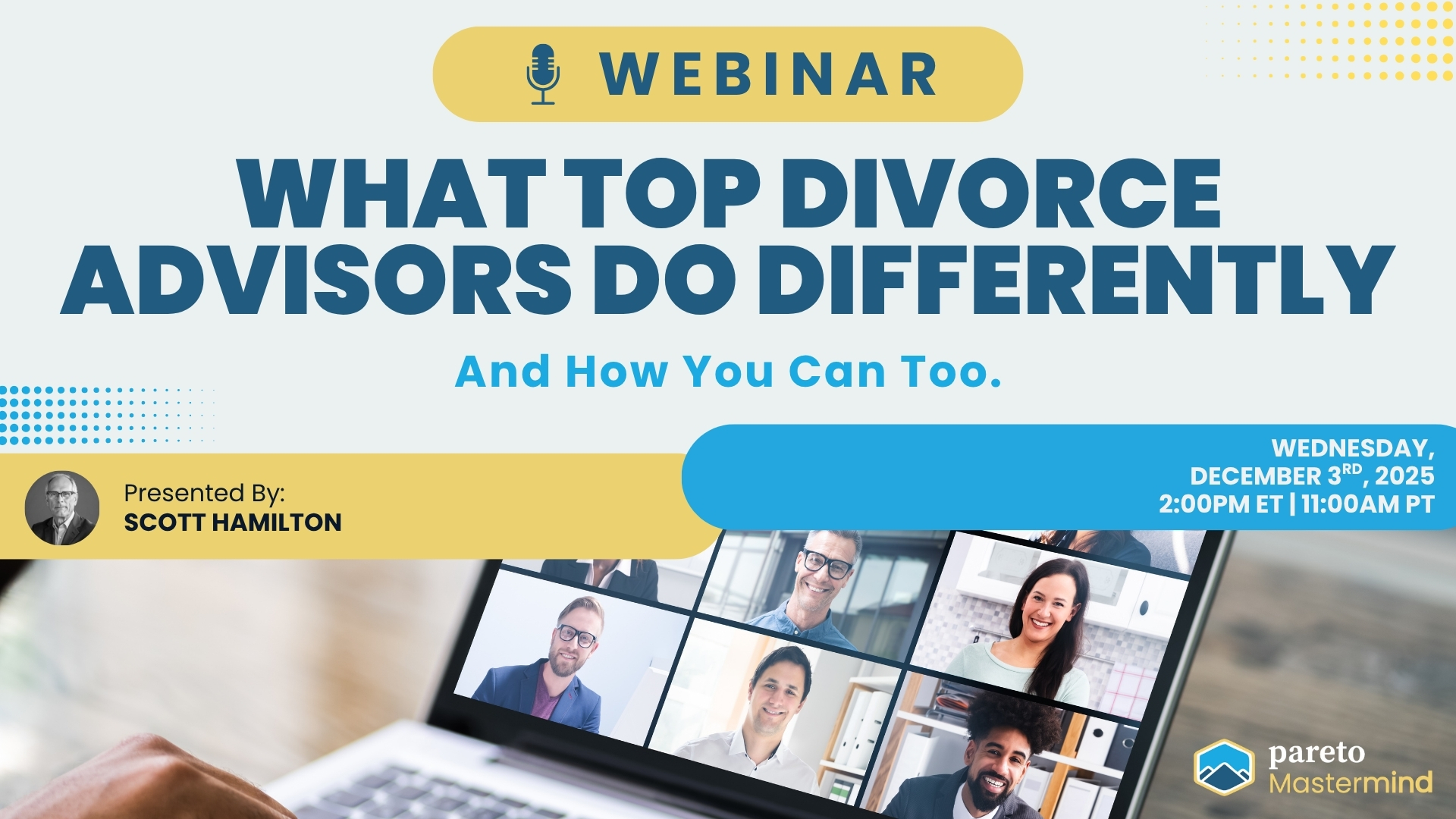 December 3 @ 2:00 pm - 3:00 pm What Top Divorce Advisors Do Differently — And How You Can Too Webinar Are you a financial advisor already working with—or wanting to [...]